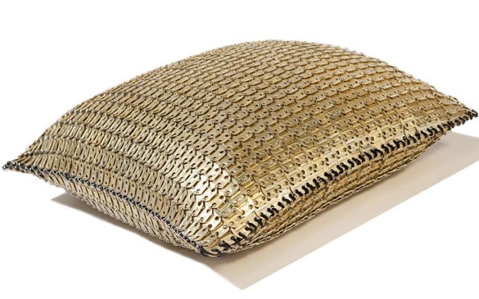 Декоративная подушка с отделкой металлической сеткой натурального цвета или цвета шампанского.