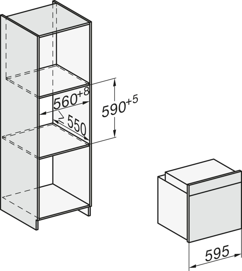 - Ширина ниши: 560–568 мм
