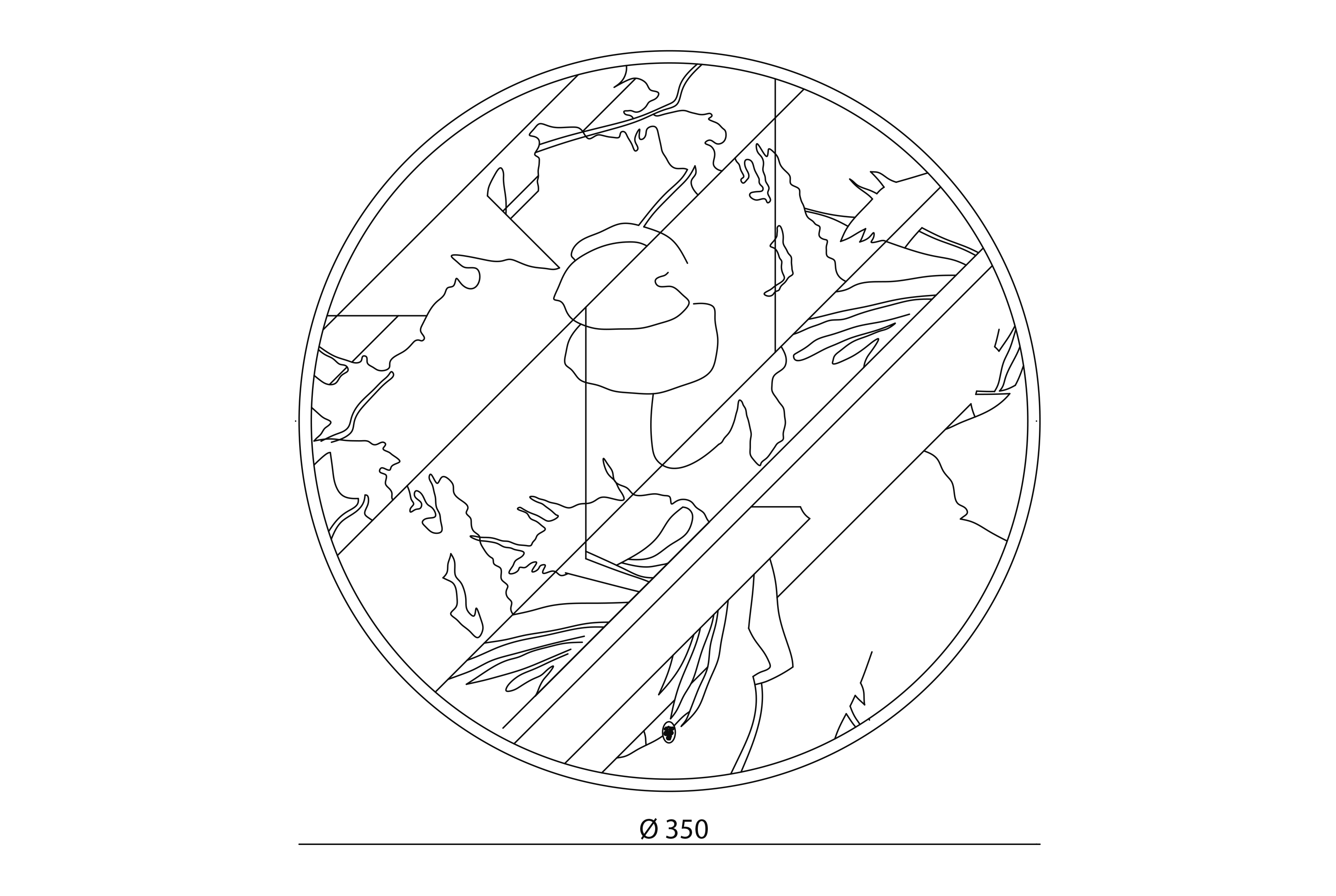Ковер ручной работы из бамбукового шелка и новозеландской шерсти; ручная отделка карвинг. Подложка из хлопка. Овальная вставка из латуни с выгравированным логотипом Visionnaire.