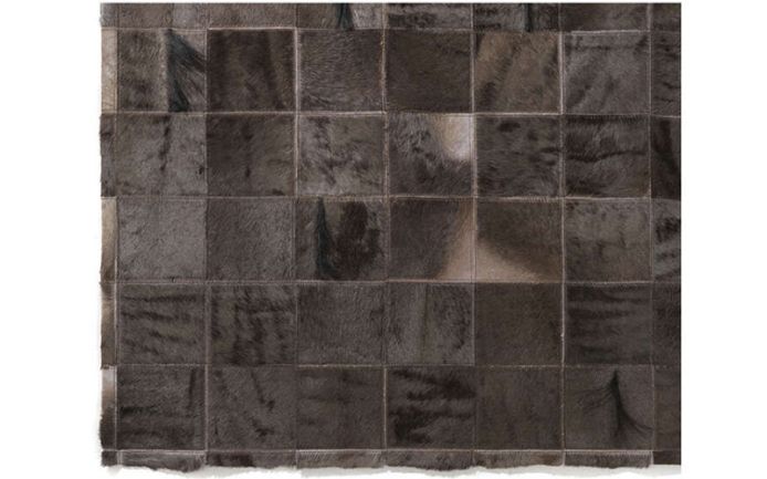 Ковер из квадратных деталей из шкуры гну. Монограмма RC с лазерной гравировкой в двух углах. Край в коже. Доступно в любом размере.