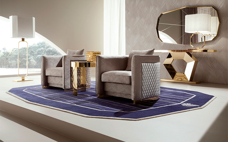 Синий ковер ручной работы из шерсти и 100% шелка с логотипом Giorgio Collection. Выполняется на заказ.