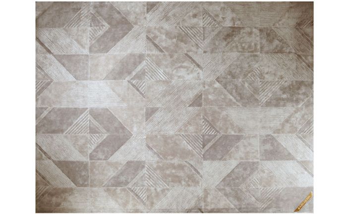 Ковер ручной работы из 100% бамбукового шелка с геометрическим рисунком в тон, выполненном в технике барельефа. Матовая латунная вставка с выгравированным логотипом Visionnaire. Хлопковая основа.