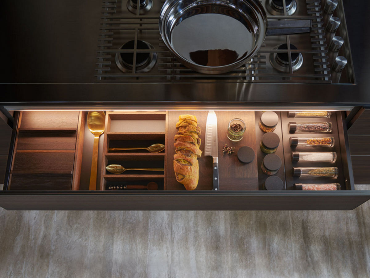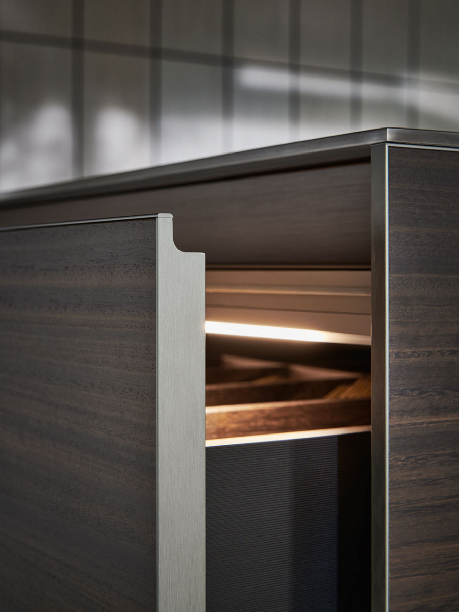 Простой, цельный, линейный дизайн, который в 2018 году дополнен новой дверью Frame. Рама изготовлена из титанового алюминия и оловянной стали с выбором качественных отделочных материалов для фасадов. Верхняя часть дверцы имеет форму, обеспечивающую эргономичный захват.