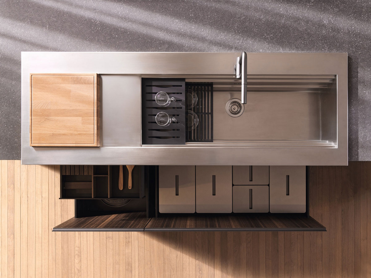 Простой, цельный, линейный дизайн, который в 2018 году дополнен новой дверью Frame. Рама изготовлена из титанового алюминия и оловянной стали с выбором качественных отделочных материалов для фасадов. Верхняя часть дверцы имеет форму, обеспечивающую эргономичный захват.
