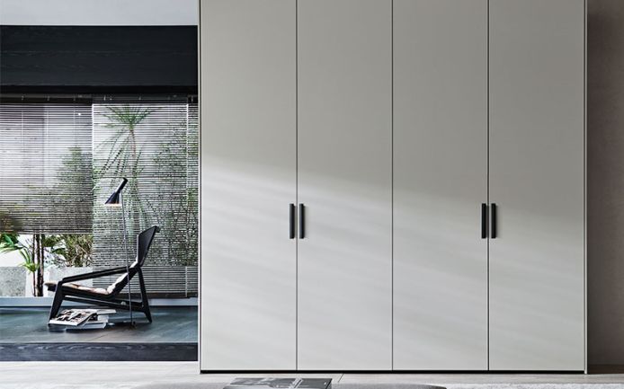 Двойная дверь с строгой официальной привлекательностью, типичной для Vincent Van Duysen, с новой внешней ручкой цвета олова.