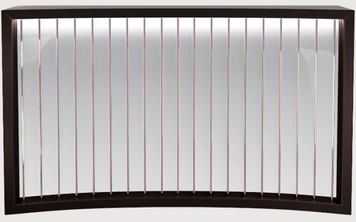 Деревянная рама из МДФ и фанеры. Зеркальные и металлические вертикальные панели. Светодиодное освещение.