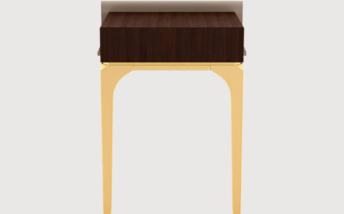 Рама из массива дерева, фанеры и кованого металла. Деревянная столешница из шпона ореха каналетто.