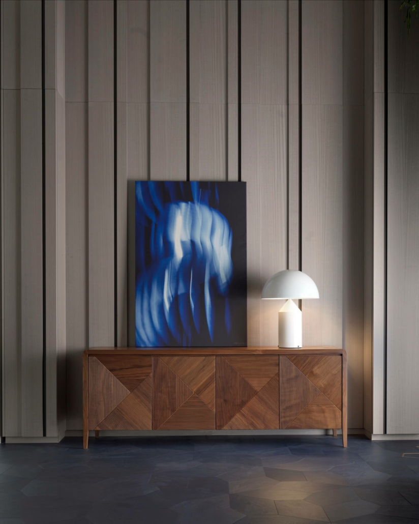 Комод из массива грецкого ореха с распашными дверцами отличается четким дизайном конструкции, смягченным закругленными углами. Он также отличается трехмерными фасадами, вдохновленными геометрической текстурой Relevo Boiserie: вертикальные и наклонные линии, результат тщательной обработки древесины, создают эффектный трехмерный образ. Комод доступен в цветах Noce Oliato, Ca' Conti, Grey 01, Ca' Selva и Colorsense, что делает его идеальным решением для различных стилей интерьера.