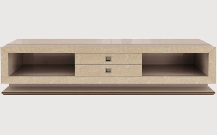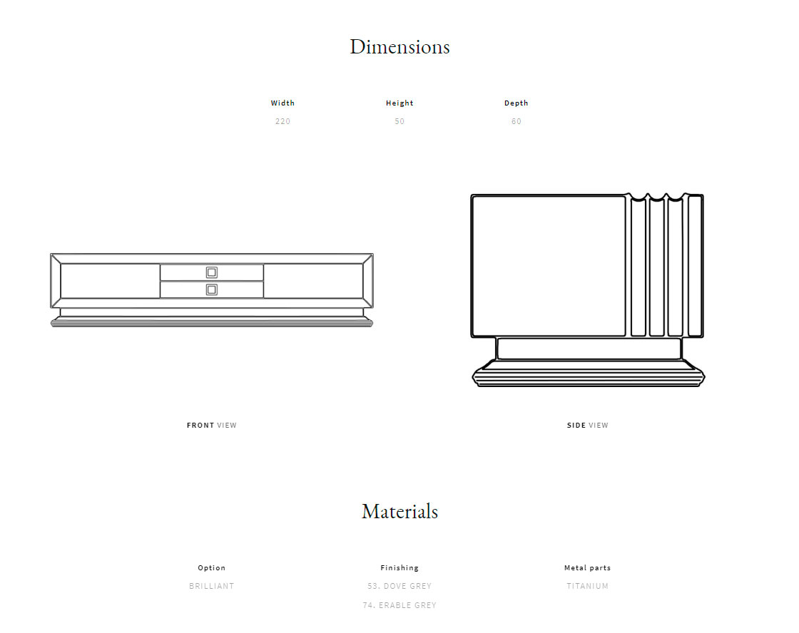 Каркас из массива дерева и фанеры. Доступные материалы: шпон серого клена, макассарского эбена или ореха каналетто. Латунные ручки и опорные детали.