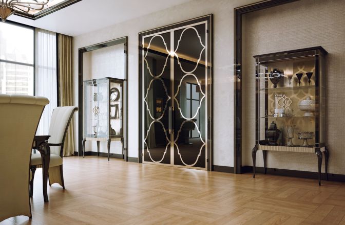 Столовая и кухня представляют собой единое уникальное пространство. Легко узнаваемый большой стол серии Manhattan, а также стулья и кресла серии Greta занимают центральную часть помещения. Благодаря отличному дизайну просторная кухня не бросается в глаза, а насладиться произведениями кулинарного искусства можно в изящной дегустационной зоне.