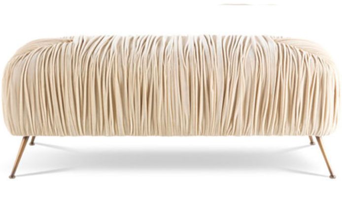 Универсальная и оригинальная скамья Rowe имеет ножки, напоминающие о пятидесятых годах, и специальную плиссированную набивку с игрой геометрии, полученную в результате сочетания трапециевидных форм. Обивка из толстого бархата подчеркивает форму складок, создавая изысканный и впечатляющий результат.