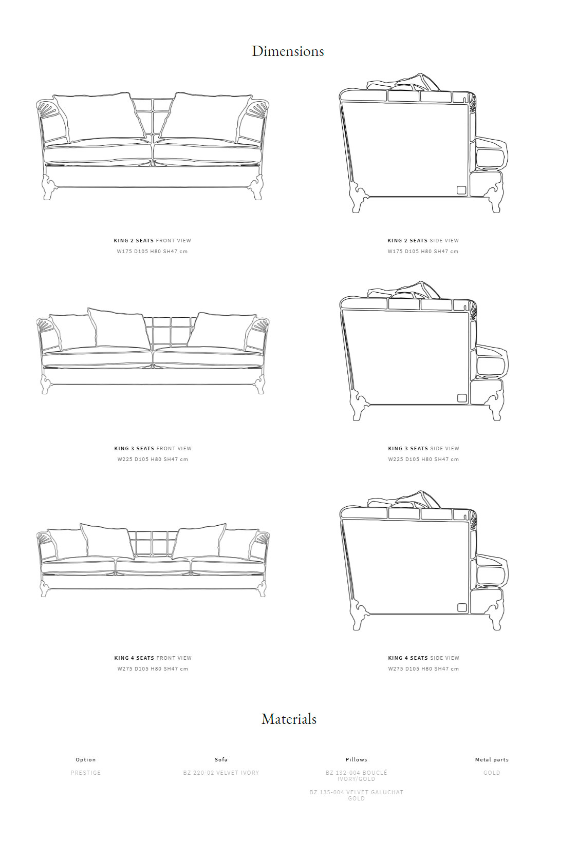 Каркас из массива дерева, ножки из латуни. Стеганая внутренняя часть корпуса с пуговицами. Подушки сиденья наполнены натуральным пером и имеют полиуретановую прокладку. Механизм трансформации отсутствует.