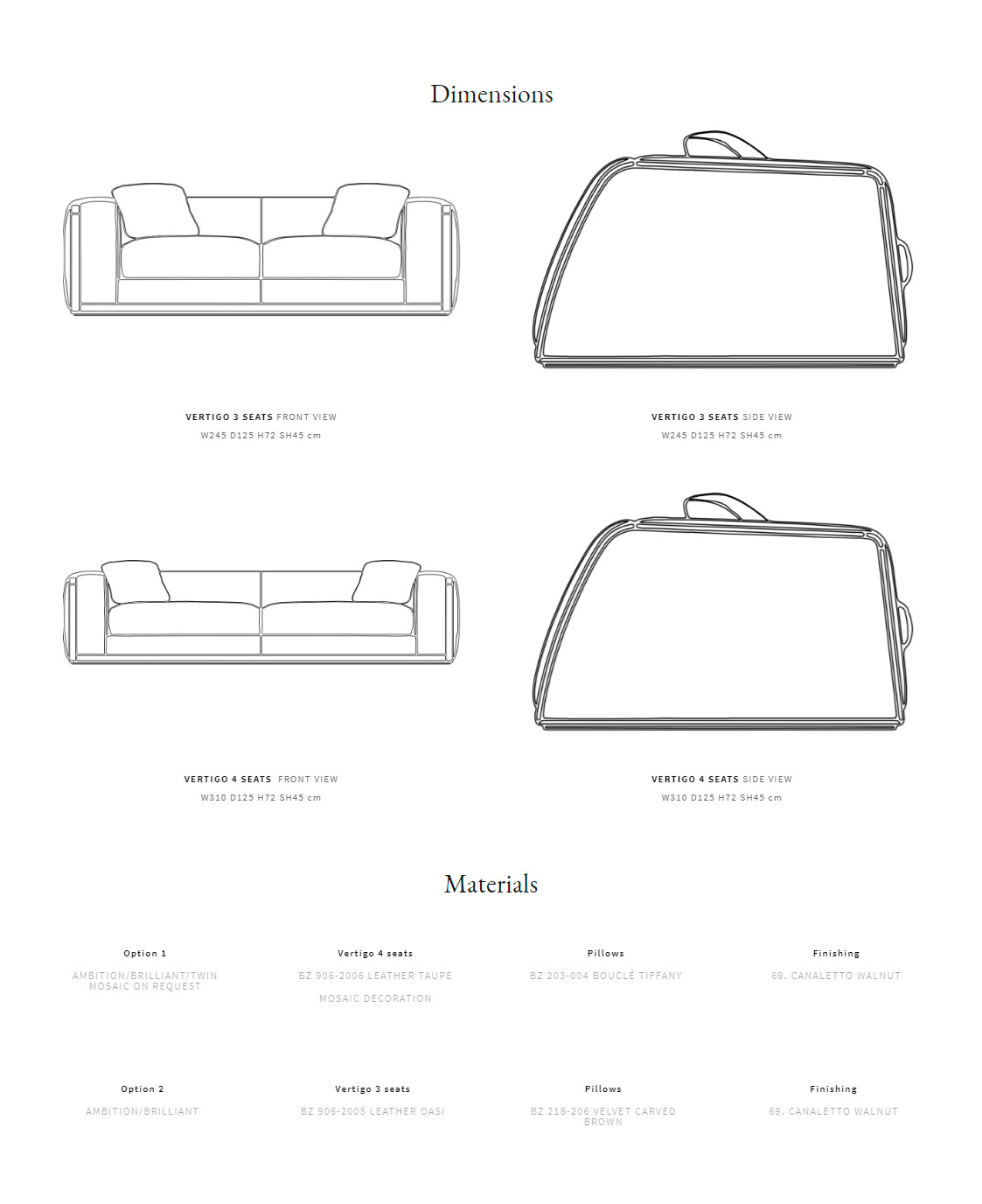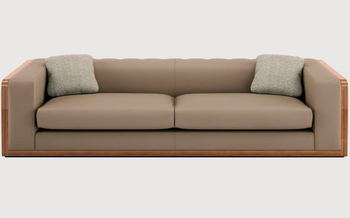 Конструкция из массива дерева, деревянные каркасы из ореха каналетто. Стеганая спинка. Подушки сиденья наполнены натуральным пером и имеют полиуретановую прокладку. Внешняя часть подлокотников выполнена из стеганой кожи (украшение из мозаики выполняется по заказу). Механизм трансформации отсутствует.