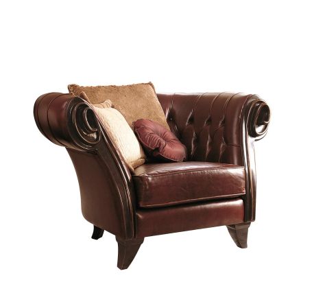 Красота кожи, которой мягко обтянуто кресло из коллекции Geneva с закругленными подлокотниками, украшенными искусно вырезанными вручную деревянными завитушками, является абсолютно выдающейся интерпретацией исключительного стиля коллекции Rialto с элегантными резными ножками.
