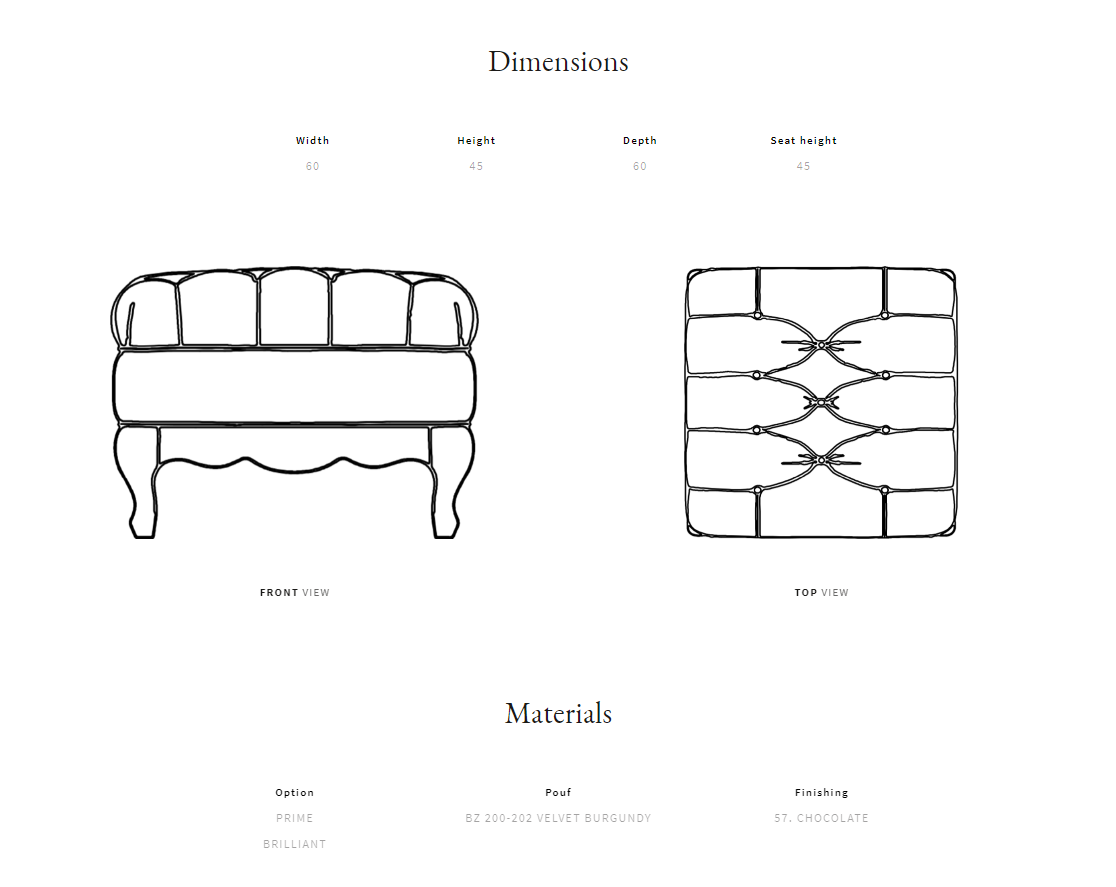 Каркас из массива дерева, фигурная основа из бука. Сиденье из пенополиуретана украшено каретной стяжкой.