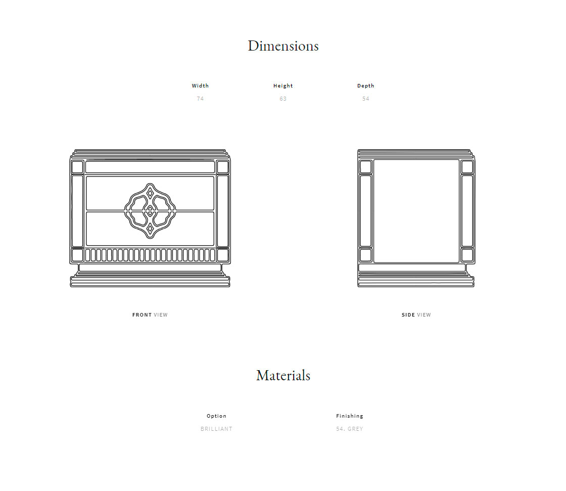 Каркас из массива дерева, фанеры и МДФ. Ящики украшены барельефом. Материал: лакированная древесина.