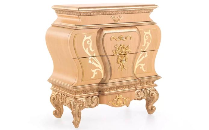 Scarlett - это линия изысканной мебели в стиле Людовика XV. Характеризующиеся извилистыми изогнутыми линиями, ночные столики коллекции отличаются элегантным декором, который усиливает обстановку, придавая предмету мебели высокую декоративную и кустарную ценность.