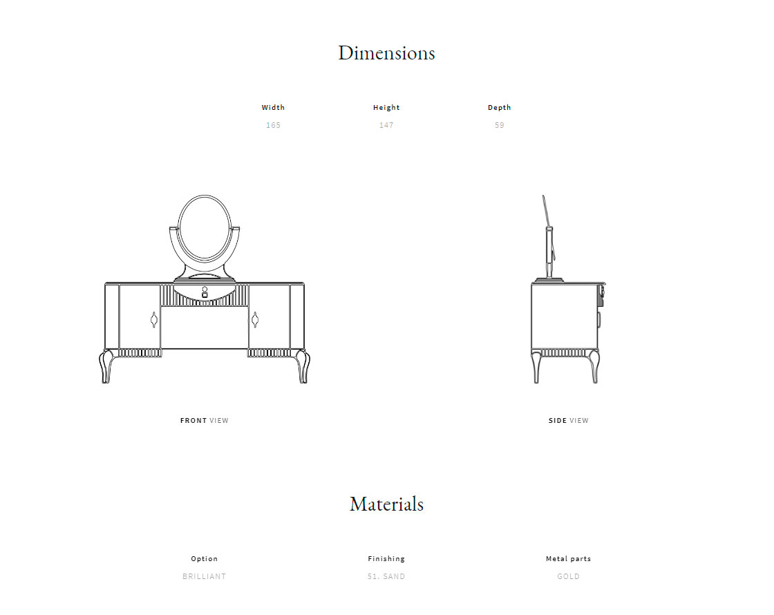 Каркас из массива дерева и фанеры. Деревянные ножки ручной работы. Материал столешницы: лакированная древесина. Латунные ручки. Настольное зеркало.
