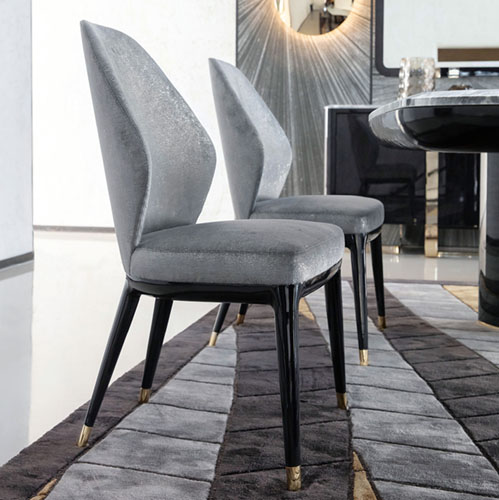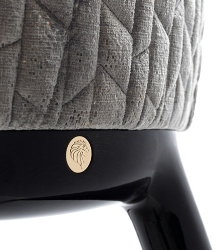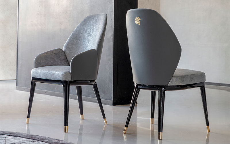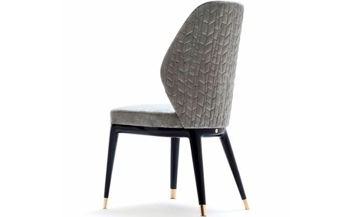 Полностью обитый стул из массива бука. 4 ножки с деталями из золотой хромированной нержавеющей стали. Деревянная основа с металлическим логотипом Giorgio Collection.
