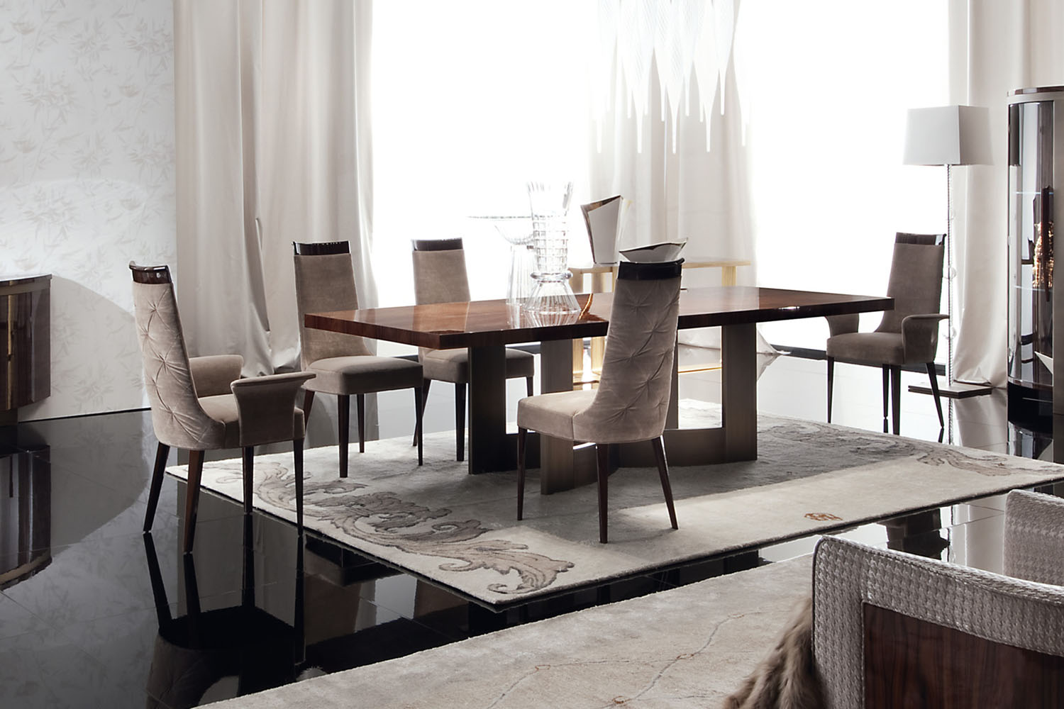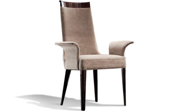 Стул из массива бука с глянцевым покрытием бразильского палисандра со спинкой на пуговицах из первоклассной кожи или кожи с тиснением под ящерицу / из бархата, велюра или замши / из кожи нубук.