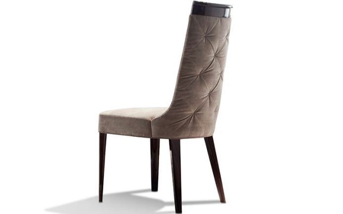 Стул из массива бука с глянцевым покрытием бразильского палисандра со спинкой на пуговицах из первоклассной кожи или кожи с тиснением под ящерицу / из бархата, велюра или замши / из кожи нубук.