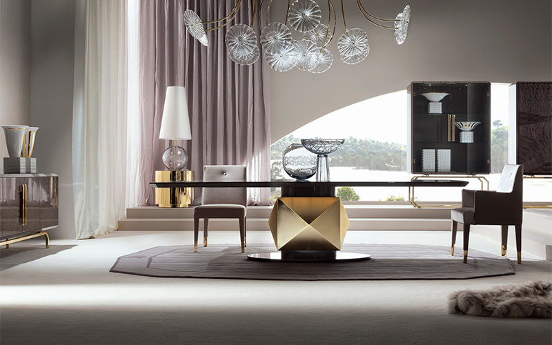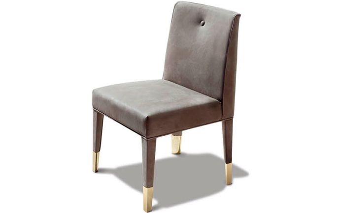 Полностью обитый стул. На спинке логотип Giorgio Collection. 4 ножки из хромированной нержавеющей стали цвета светлого золота.