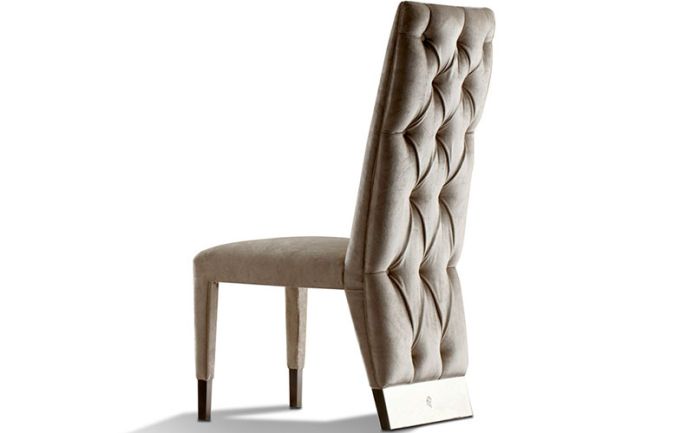 Стул полностью в мягкой обивке со спинкой на пуговицах. Подлокотники и основание спинки из бронзовой латуни со вставкой с логотипом Giorgio Collection, 2 передние ножки из бронзированной латуни.