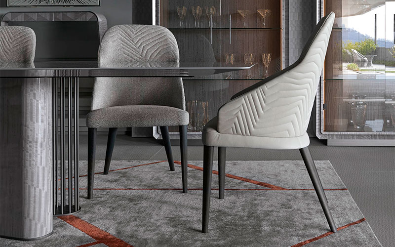Полностью обитое кресло из массива дуба. Спинка из стеганой кожи первого сорта, нубука, кожи с тиснением под ящерицу, бархата или замши. Мягкое основание с вышитым логотипом Giorgio Collection. 4 ножки из сатинированного дуба.