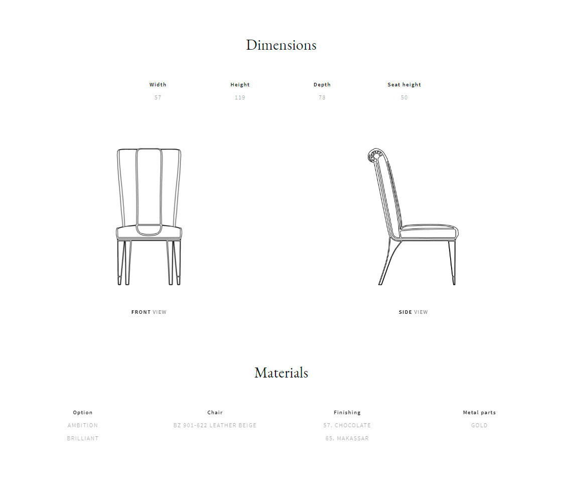 Рама из массива дерева и фанеры. Стеганая спинка и сиденье. Набивка из пенополиуретана разной плотности. Доступный материал: шпон макассарского эбена.