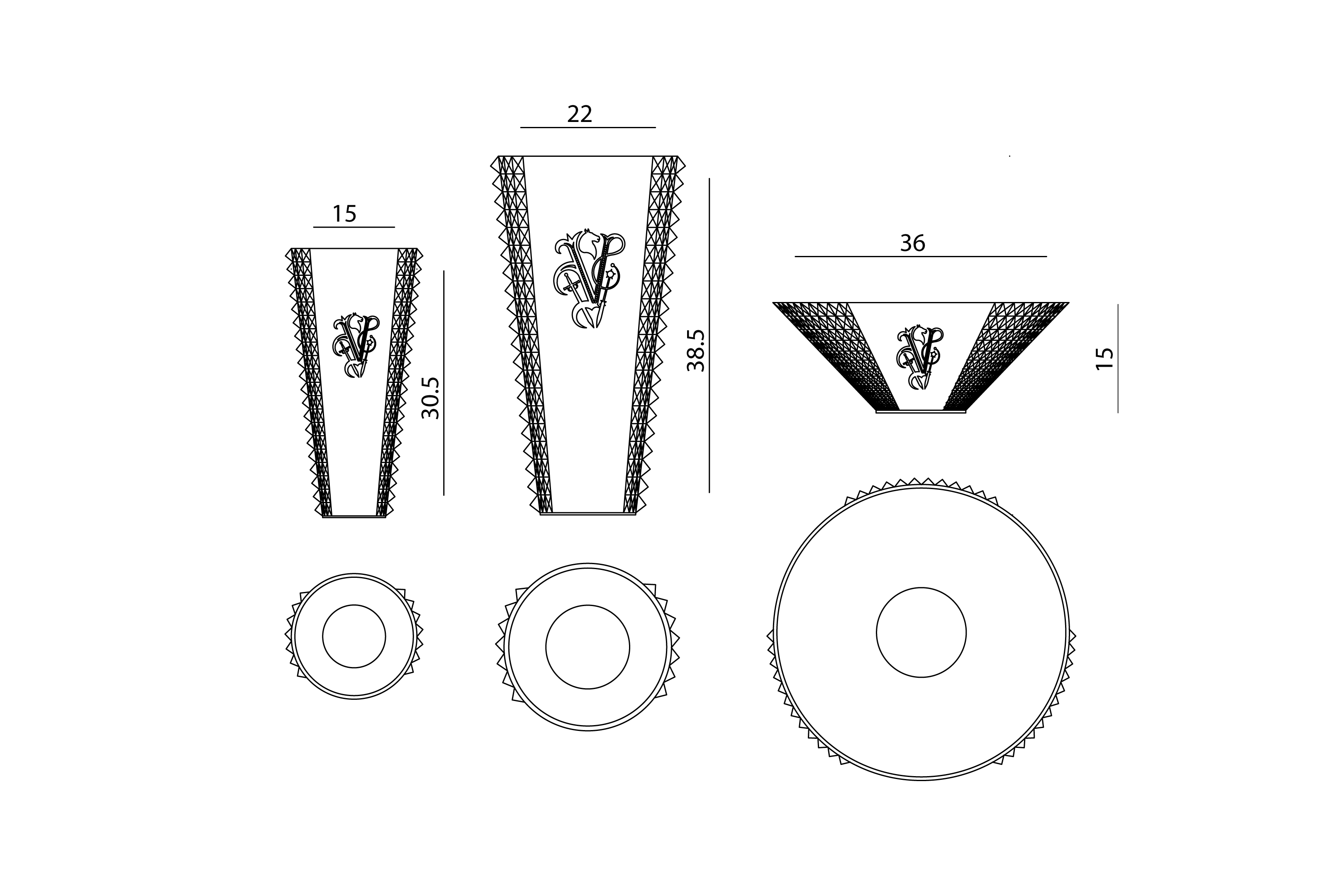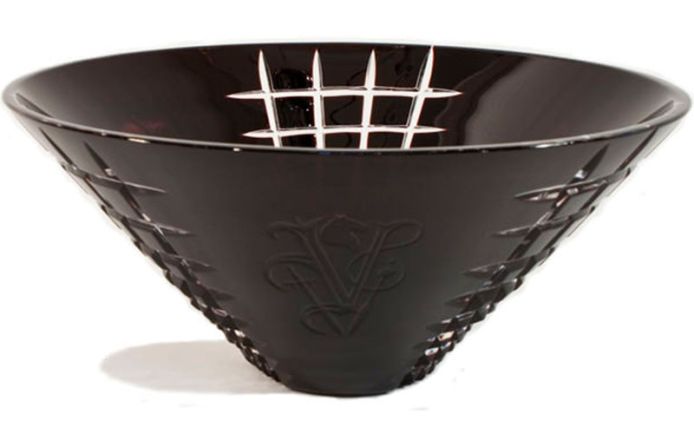 Хрустальная ваза в форме черного усеченного конуса с выгравированной вручную геральдической символикой Visionnaire.