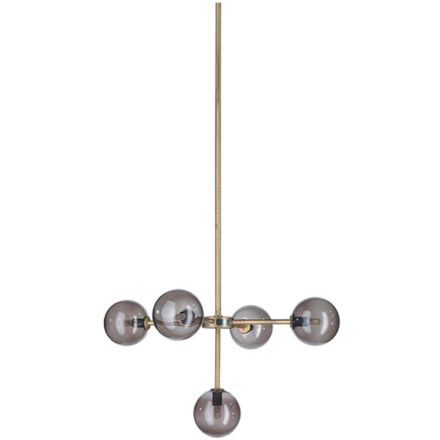 Люстра с каркасом из латуни с отделкой из бронзированной латуни. Абажуры из формованного стекла.