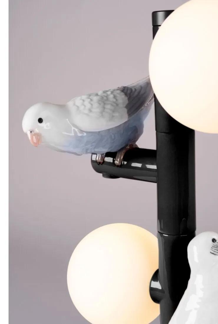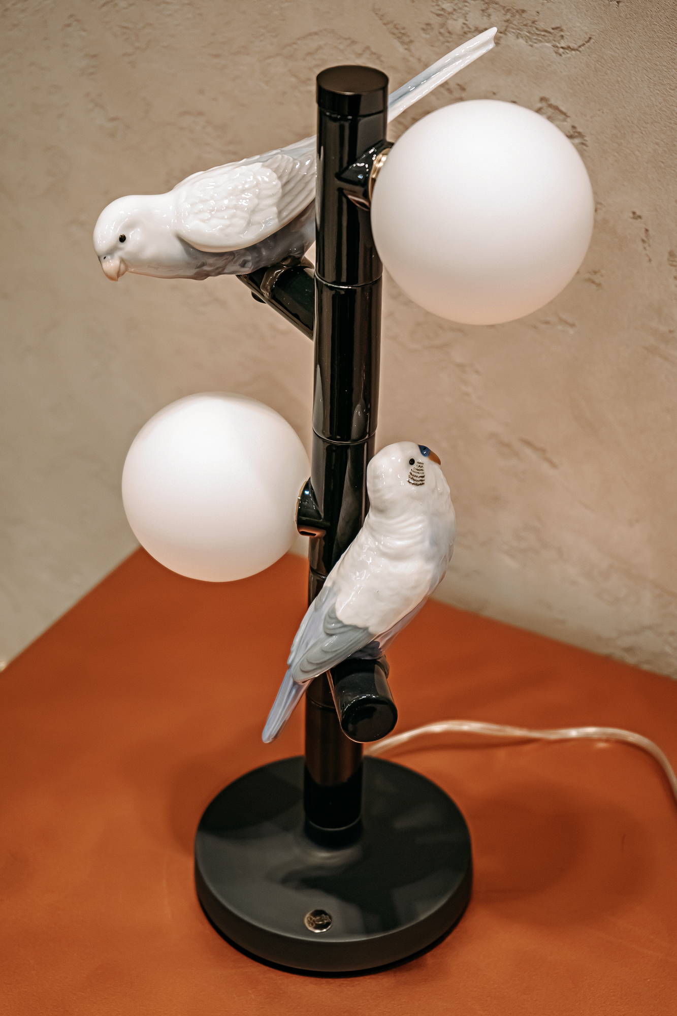 В коллекцию "The Parrot Party" только что пополнилось новое творение с милым попугаем, сидящим на настольной лампе. Оригинальный дизайн придаст веселый оттенок любому интерьеру. Птицы выполнены из глазурованного фарфора и украшены нежными голубыми тонами. Настенный светильник выполнен из глазурованного фарфора с черной отделкой, с двумя стеклянными плафонами. Масса 3 кг: Отделка: Глянцевый и матовый Беспроводная связь: Нет Тип лампы: Настольная лампа Тип штекера: CE