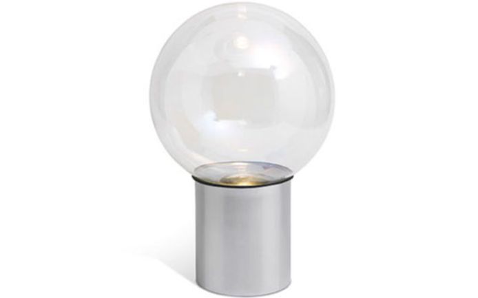Настольная лампа с каркасом из металла с хромированной отделкой. Абажур из стекла.
