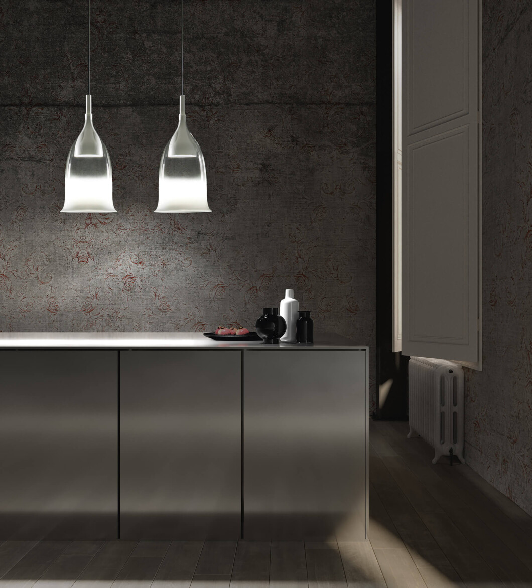 Стеклянный кулон с золотым или белым оттенком. Металлическая структура с матовой белой, светло-золотой или серо-стальной отделкой.
