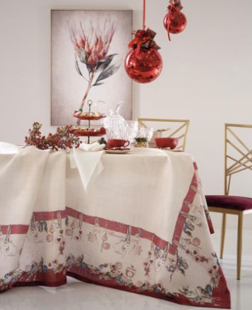 Льняная скатерть на 10/12 посадочных мест с набивным