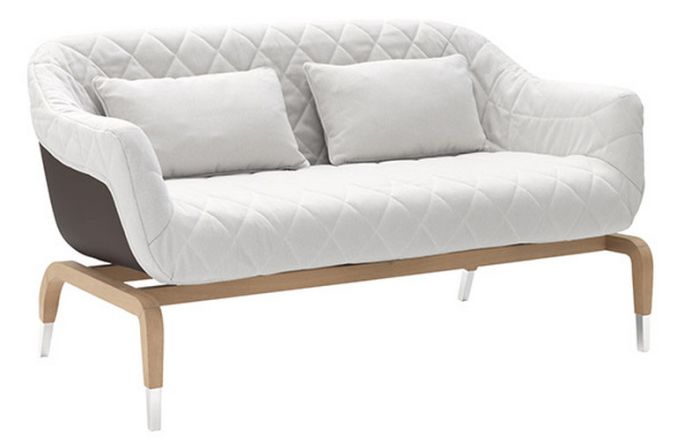 Диван с мягкой обивкой Fix с отделкой “EcoSun”, 2 тканевые подушки для ног, основание из тикового дерева с деталями из полированной стали.