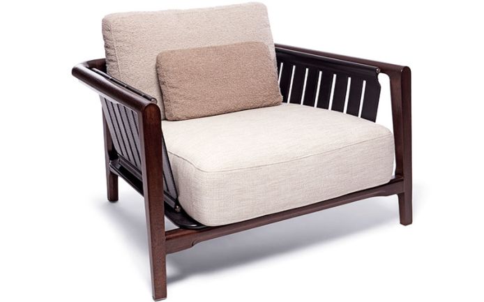 Каркас из массива ироко скреплена с помощью полиуретанового клея, скоб и молний из нержавеющей стали. Каркас сиденья из березовой фанеры с кромкой, обтянутой плотной кожей.
