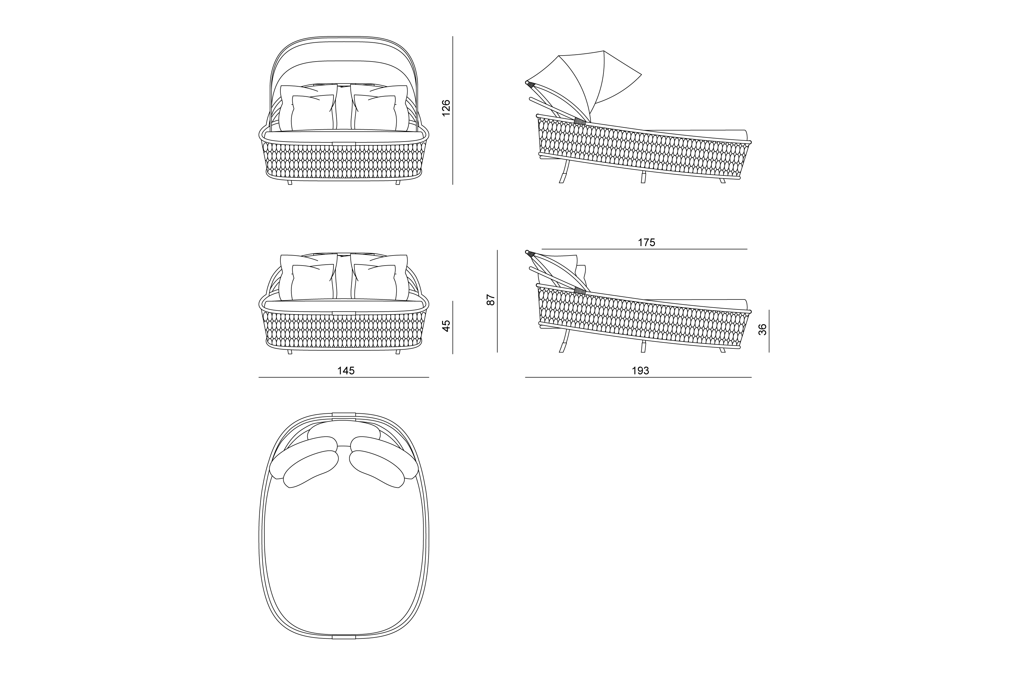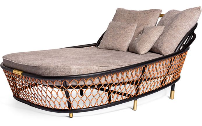 Основная конструкция из натурального плетения, ремни из кожи и металлические зажимы из полированной нержавеющей стали с выгравированным логотипом Visionnaire. Матрас на опорной панели из морской фанеры.