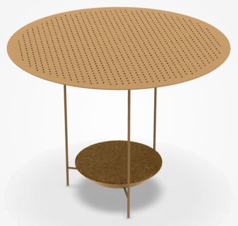 Стол Panna Cotta имеет каркас из нержавеющей стали, основание противовес из лавового камня и стальную столешницу с перфорированным верхом.
