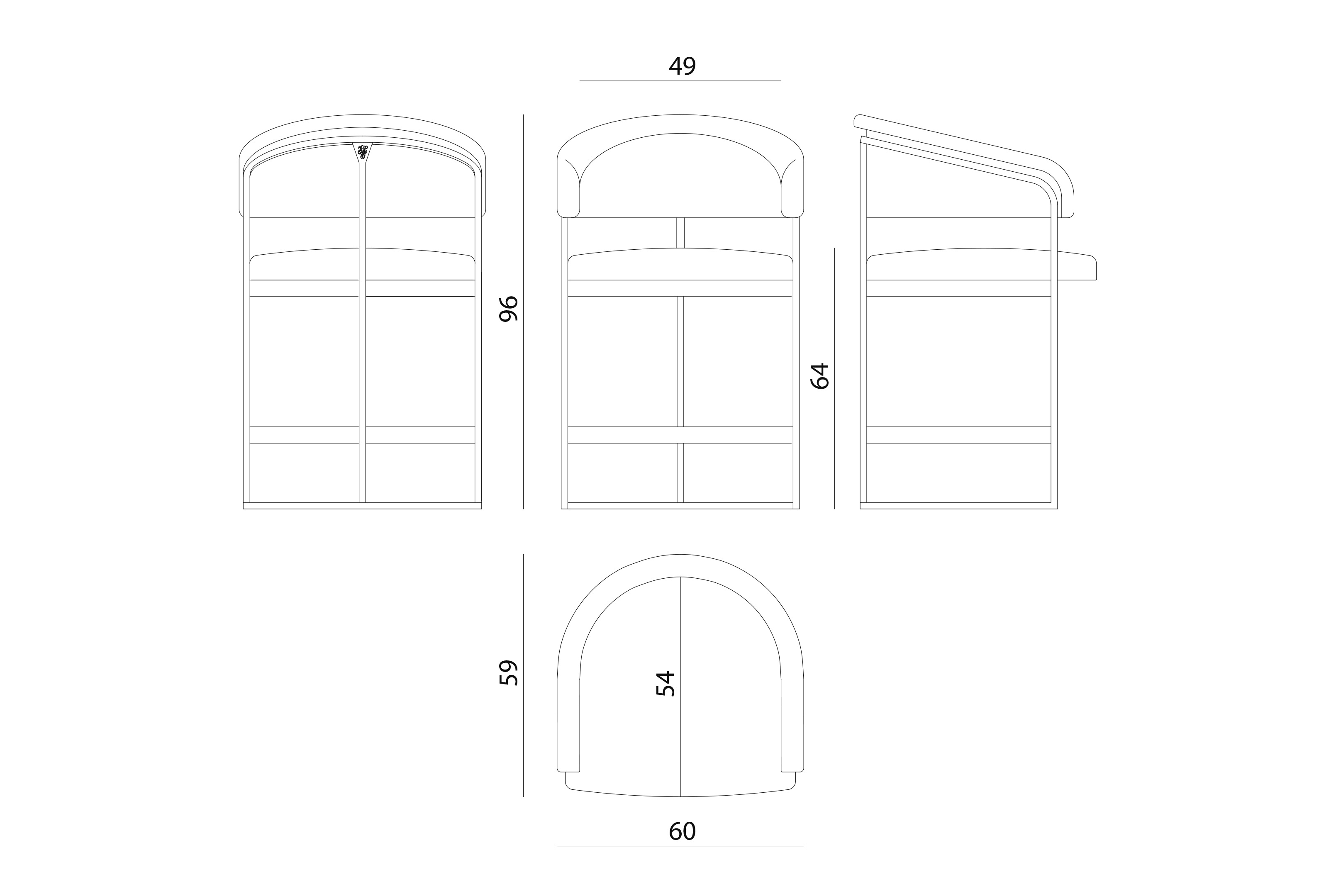 Каркас из хромированного латунного профиля квадратного сечения с выгравированным логотипом Visionnaire; опора для ног из нержавеющей стали; сиденье и спинка из изогнутой фанеры; обивка из полиуретана различной степени плотности и акрилового волокна.