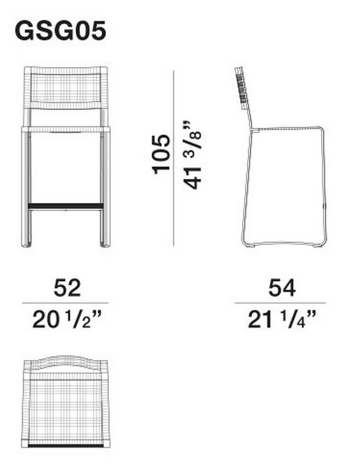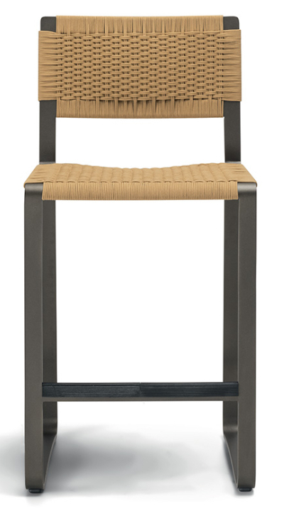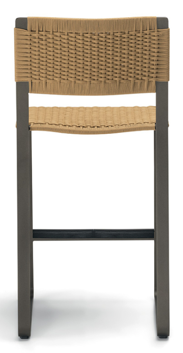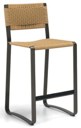 Каркас сиденья из полированного окрашенного алюминия, изгиб ленты повторяет форму спинки и основания с динамичными, подвижными и угловатыми профилями. На металлический каркас вплетен плотный чехол из полипропиленовой веревки ручной работы.