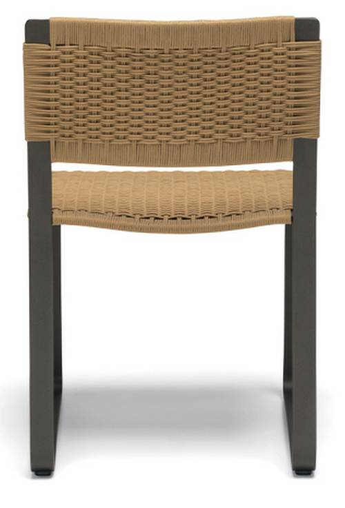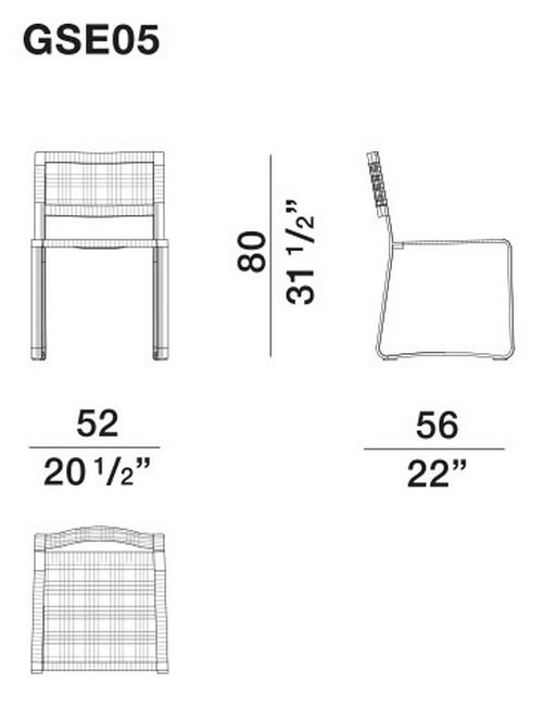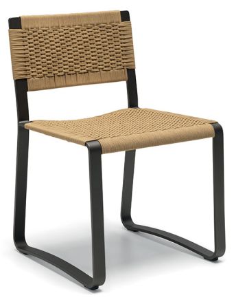 Каркас сиденья из полированного окрашенного алюминия, изгиб ленты повторяет форму спинки и основания с динамичными, подвижными и угловатыми профилями. На металлический каркас вплетен плотный чехол из полипропиленовой веревки ручной работы.