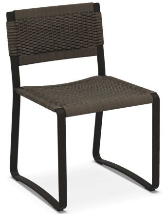 Каркас сиденья из полированного окрашенного алюминия, изгиб ленты повторяет форму спинки и основания с динамичными, подвижными и угловатыми профилями. На металлический каркас вплетен плотный чехол из полипропиленовой веревки ручной работы.