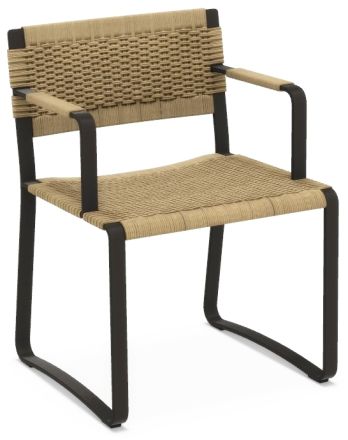 Каркас сиденья из полированного окрашенного алюминия, изгиб ленты повторяет форму спинки и основания с динамичными, подвижными и угловатыми профилями. На металлический каркас вплетен плотный чехол из полипропиленовой веревки ручной работы.
