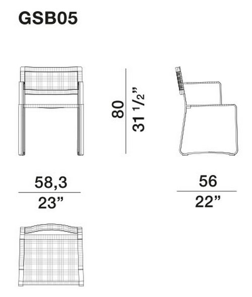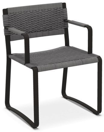 Каркас сиденья из полированного окрашенного алюминия, изгиб ленты повторяет форму спинки и основания с динамичными, подвижными и угловатыми профилями. На металлический каркас вплетен плотный чехол из полипропиленовой веревки ручной работы.