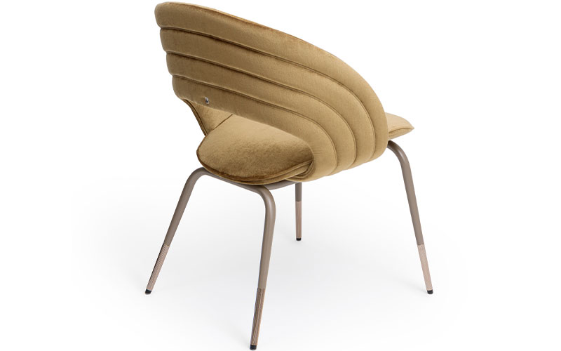 Корпус из изогнутой водостойкой фанеры, с ножками из металлического профиля и точеными наконечниками. Стеганая обивка с кожаным или тканевым чехлом с водостойкими свойствами; отделочный декоративный шнур спинки из того же материала.