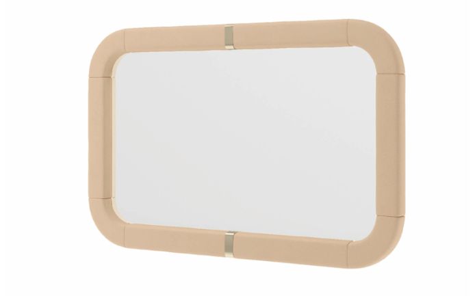 Зеркало коллекции Madison имеет современный дизайн. Деревянная рама с отделкой глянцевым лаком горизонтально пересекается металлическими деталями, которые делят зеркало на секции из бронзированного и белого зеркала. Металлические детали цвета светлого золота украшают структуру. Зеркало коллекции Madison доступно в различных вариантах отделки в соответствии с образцами