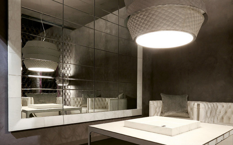 Зеркало Bucarest оформлено простой широкой рамой, отделанной кожей. Оно может иметь различные размеры. Напольный вариант такого зеркала приставляется к стене и удерживается на низкой подставке.