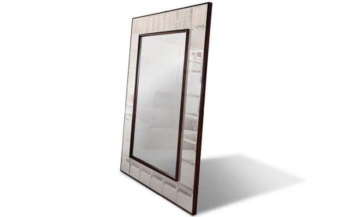 Напольное зеркало в комбинации шпона макассарского черного дерева с матовой отделкой и зеркалами со скошенной кромкой.