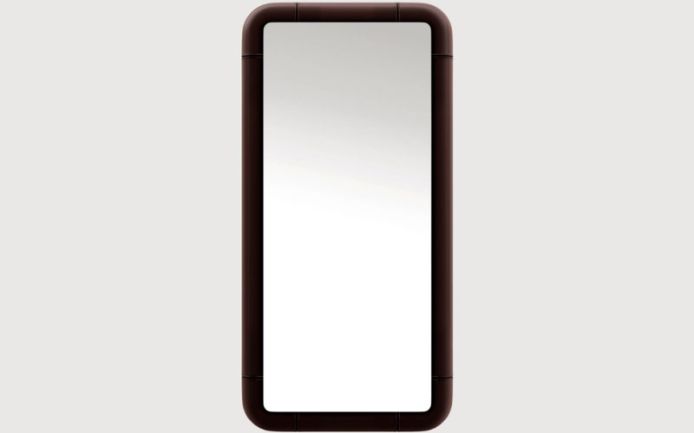 Каркас из древесины, покрытой кожей, и панель из лакированной фанеры. Осветленное зеркало.